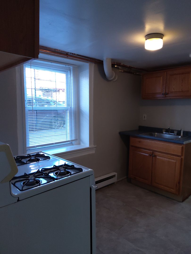 Lovely studio space perfect for a tenant on a budget or a student. Great location, Pet friendly unit. Ready to move in Sept 2025. Unit has private entrance into a large living area, there is a eat in kit with gas range and refrigerator included, bath has large shower, flush and vanity. Ceramic flooring thru out. New windows thru out. EZ to view Laundry in building. Street parking